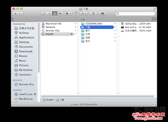 2.在PC或Mac上安装小米路由器客户端(在路由器管理界面miwifi.com上可下载),电脑上会出现名为Xiaomi的虚拟盘符,在其中找到“下载”或“TDDOWNLOAD”文件夹中下载好的影片,直接播放或者复制到本机即可。