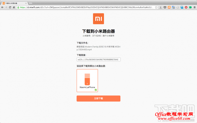 3.在新页面中可以看到自己绑定的小米路由器,此处为“Xiaomi.LeiPhone”,点击“立即下载”。