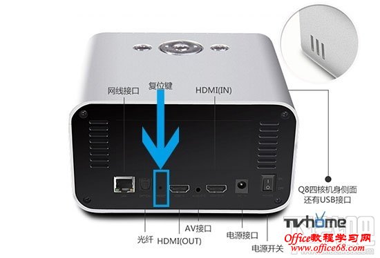 2、找到开博尔电视盒子复位键,用牙签持续按复位键