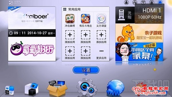 3、将U盘插入开博尔电视盒子中,进入开博尔界面,选择设置中的高级设置