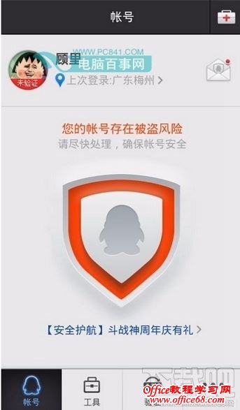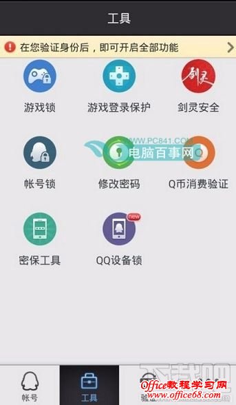 3、下载,安装完成后,登陆不能发送邮件的QQ号码。然后会有提示:【在您验证身份后,即可开启全部功能】,验证手机号码后,即可开启安全之旅。