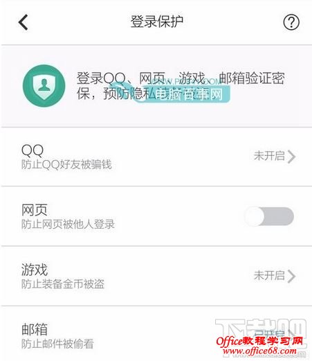 5、进入【登陆保护】后,然后开启邮箱(下面有一排小字是:防止邮件被偷看) 之后重新扫码登录网页邮箱,就可以发收邮件了。
