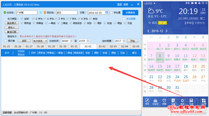 有了记事提醒,还是没有“抢”到火车票怎么办?人生日历教你巧妙利用网络、电话“捡漏”。 技巧一:放票30分钟以后会出现余票。 部分旅客为了能抢到往返的票,会请多人同时帮抢票。那么,如果抢到了多张票,会在支付时间过后退回多余车票,这时久可以继续抢余票了。 技巧二:从“囤票族”的退票中捡漏。 由于春运提前60天抢票,很多人无法确定自己的具体回家日期,这就导致他们会选择提前多订几天的火车票,由“抢票族”进一步变为“囤票族”。后面各个公司确定了放假时间,又会有一大波退票放出,这时候就可以捡漏了。 技巧三:开车前一到两天,部分车次仍会出现余票。 此前有网友爆料,以前买不到的火车票,在开车的前一天几乎都会有部分余票出现,因为部分乘客开车前不确定出行时间,会买了不同日期的车票或同日不同车次。但他们在开行前一到两天往往已确定行程,因此会退掉多余的车票。 技巧再多,您还需要用更加智能的人生日历来捡漏。选定出发地、目的地及车次类型,还有指定席别和乘车人等,最重要的是要记得勾选“自动刷票”。每天打开人生日历设置并最小化窗口,只要刷到票了,人生日历会自动弹出验证码输入框,用户点选正确的验证码图片,即可排队抢漏票,如未抢到还可继续刷票,刷票过程完全不影响您的工作。