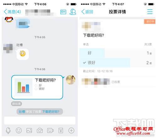 5、在群上查看到发布投票成功,等待投票结果吧!