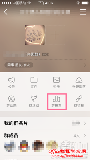 3、在群信息页面中找到【群投票】,并点击进入