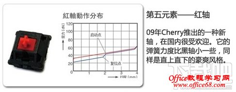 红轴,力度比较轻,与黑轴塑料部分相同,直上直下爽快自然,入门者可能会觉得它比较滑。 |