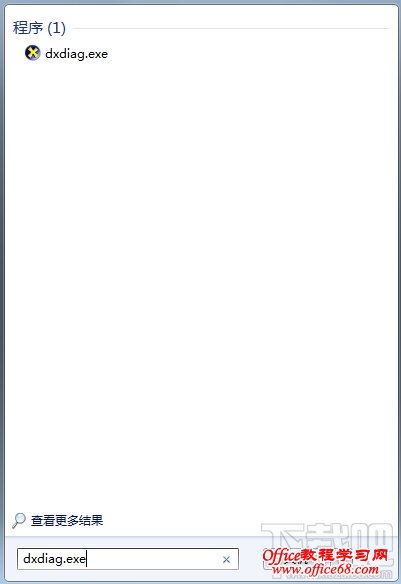 3、单击“开始”按钮,在搜索程序和文件框中键入“dxdiag”命令,在结果列表单击程序下的“dxdiag.exe”