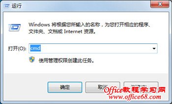 7、在“运行”对话框输入“cmd”命令,单击“确定”按钮