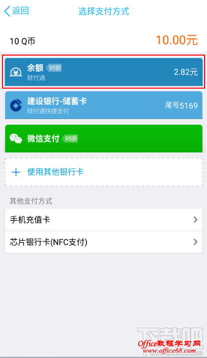 五、选择余额充值即可,相当于使用qq红包里的钱