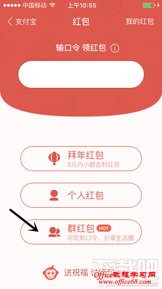 2、不管是数字口令还是中文口令,创建口令红包你只能选择【群红包】,就是这个。