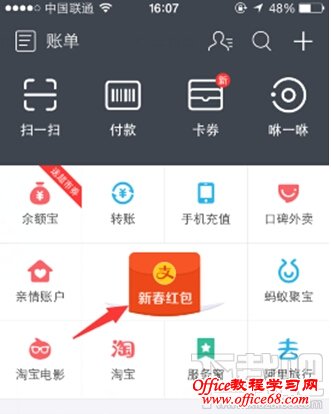 支付宝中文口令红包怎么玩 2016支付宝中文口令红包设置教程【前提条件】下载/更新最新版的支付宝 支付宝钱包下载:Android版|iPhone版; 1、下载/更新到最新版支付宝后,点击进入在支付宝钱包主页找到【新春红包】。