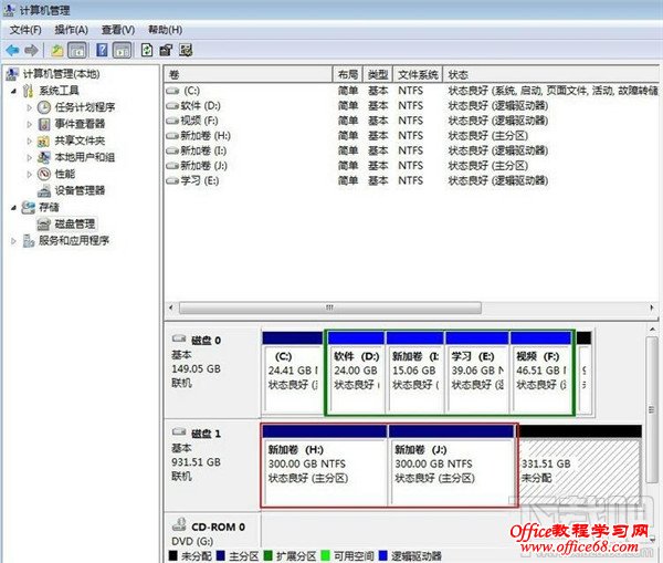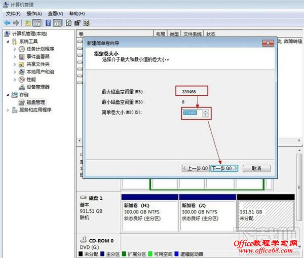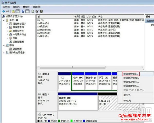 9、在剩下的“未分配”磁盘上右键->新建简单卷,然后重复上面的步骤,去建立第二个分区,第三个分区;