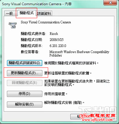第四步:在“Sony Visual Communication Camera“属性”中打开“更新驱动程序”
