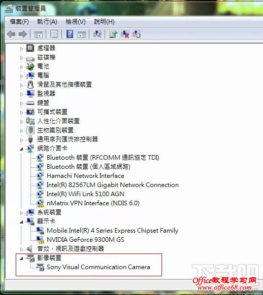第三步:找到图像设备,点开会看到“Integrated Camera”又或者是小编的电脑的“Sony Visual Communication Camera”