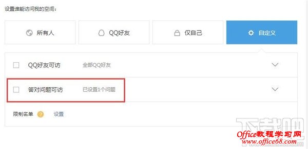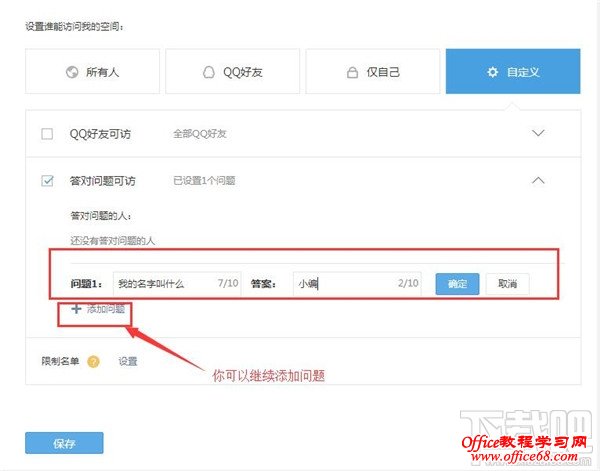4、选择回答问题访问,一般是没有什么人能回答得出来你自己设置的问题的,也就是别人进不了你的空间了;