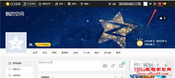2、进入QQ空间之后,找到一个设置图标,点击进入设置;