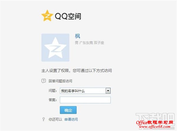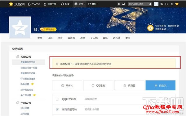 6、然后别人访问你的空间就会弹出回答问题的权限了;