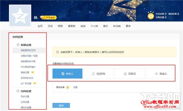QQ空间是中国最大的社交网络,是QQ用户的网上家园,您可以玩游戏、玩装扮、上传照片、写说说、写日志,一个完全属于你的空间。如果你不想让别人进入你的空间,你可以设置访问权限,那么qq空间怎么设置访问权限呢?