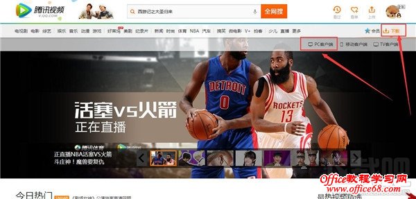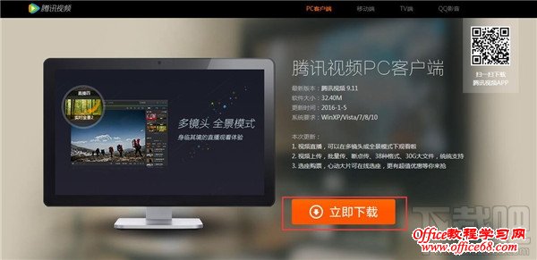 2、登录腾讯视频的官网,在官网可以找到一个下载的按钮,鼠标放上去就会弹出你要下载的类型,我们选择pc客户端版;