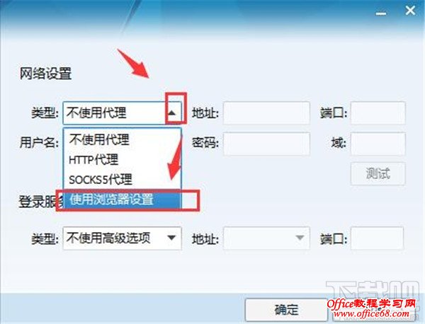 2、点击登录页面右上角的设置; 3、网络设置的类型选择使用浏览器设置;