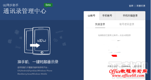 4、完成添加后,打开“QQ通讯录”的应用。自动进入QQ同步助手(通讯录管理中心)的界面。再次登录QQ账号,才能进入下一步操作。