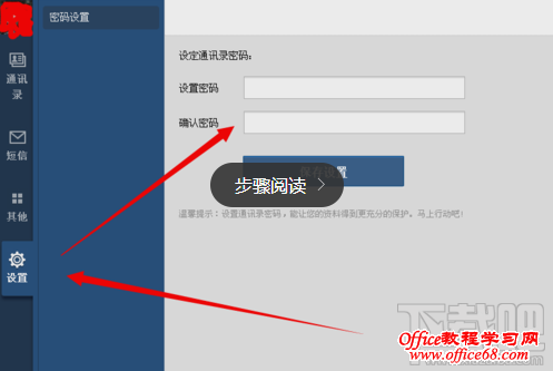 6、另外,用户还可以自己设置独立的QQ通讯录密码,这样就大大增加了QQ好友通讯的安全性了。 点击QQ通讯录界面的“设置”,输入新的密码就设置成功了。