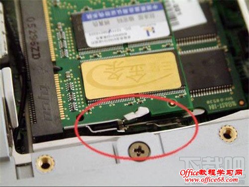 6、如图所示这就是卡扣卡住内存条的样子。要注意操作的时候一定要小心,不用用力过大,否则会损坏各种部件。安装完成之后再盖上后盖儿,然后用螺丝刀拧紧螺丝就可以了;