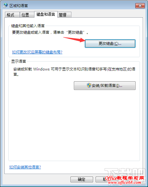 2、点击区域和语言后,点击更改键盘,添加。里面找到搜狗输入法,添加进去。就可以用了。