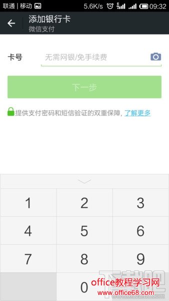 二、点击下面的“添加银行卡”,进入输入银行卡号的页面。