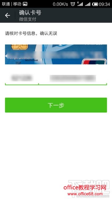 三、输入银行卡卡号并确认,完了点击【下一步】。