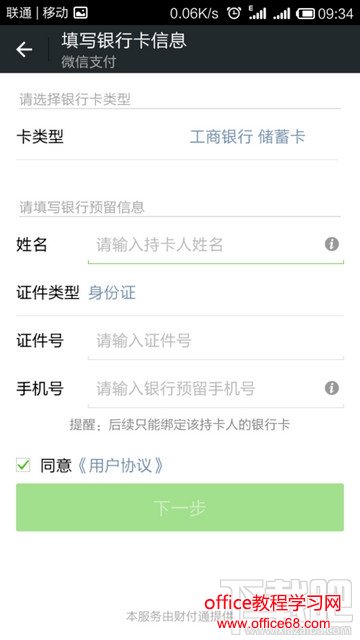 五、填写个人真实姓名,证件类型,证件号,手机号。注意手机号是与该卡绑定的手机号,然后点击下一步进步手机号验证阶段。