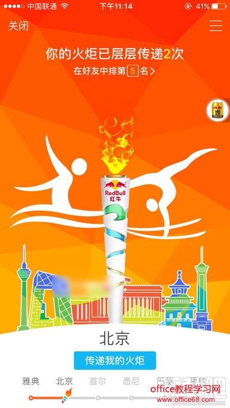 伴着2016的巴西奥运会,手机QQ推出了传递QQ火炬手的活动,只要参加QQ火炬手传递,就会在聊天界面看到有QQ火炬手图标,不想用这个图标了怎么办?QQ火炬手图标怎么关闭呢?下面就是关闭手机qq火炬手图标的具体方法,快来瞧瞧吧! QQ火炬手关闭图标方法:1、首先你在手机QQ主界面向下滑动屏幕调出传递我的火炬页面,如图所示。