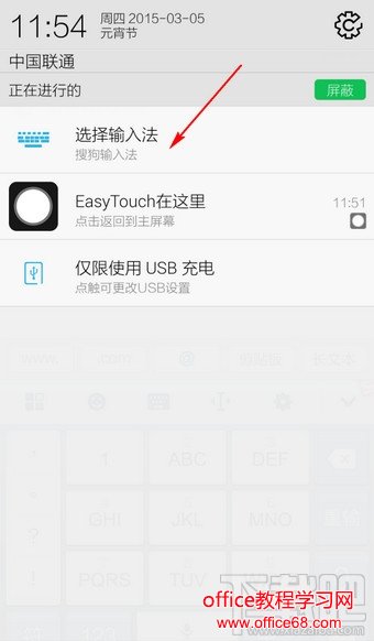 手机搜狗输入法怎么切换其他输入法方法一、临时切换 1.在手机搜狗输入法下,从顶部下拉通知栏。