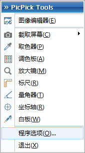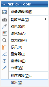 1、安装并双击运行PicPick后,在电脑任务栏右下角将会出现软件图标,单击图标可打开快捷功能菜单。如下图: