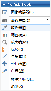 单击Picpick图标——选择取色器。可提取屏幕中任何一处的颜色。