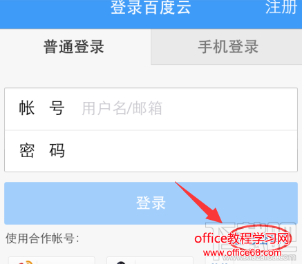 账号退出来后就会自动回到登录页面,点击一下“忘记密码”了。我们可以使用这个方法来进行修改百度云手机端上的登录密码。