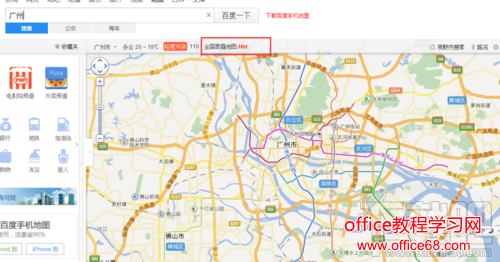 打开百度地图首页,输入你当前所在地区的位置,以广州为例!
