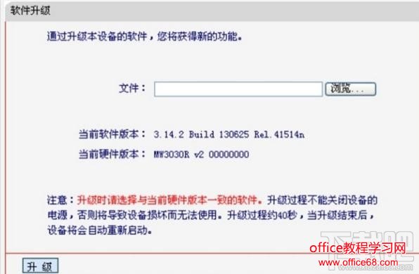 V1-V3水星MW305R路由器固件升级 (2)、V4-V7版本的水星MW305R路由器,在设置界面点击“高级设置”——>“设备管理”——>“软件升级”——>点击“浏览”,找到刚才下载的升级软件——>点击“软件升级”。