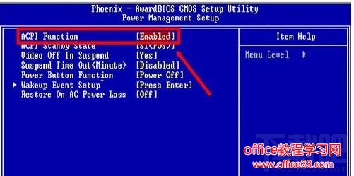 如果该问题是在修改过BIOS后出现的,那么可能是因为在BIOS中电源选项设置错误所引起的。可以在开机时按键(各种品牌机菜单会有不同)进入BIOS设置界面,选择 Power Management Setup 或 Power BIOS Features 项后回车进入具体的设置,把其中的ACPI Function 设为 Enabled (启用)即可。