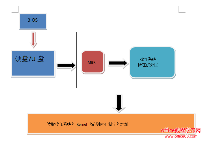 三、第三阶段:硬盘分区启动这时,计算机的控制权就要转交给硬盘的某个分区了,这里又分成三种情况。 3.1 情况A:卷引导记录上一节提到,四个主分区里面,只有一个是激活的。计算机会读取激活分区的第一个扇区,叫做"卷引导记录"(Volume boot record,缩写为VBR)。 "卷引导记录"的主要作用是,告诉计算机,操作系统在这个分区里的位置。然后,计算机就会加载操作系统了。 3.2 情况B:扩展分区和逻辑分区随着硬盘越来越大,四个主分区已经不够了,需要更多的分区。但是,分区表只有四项,因此规定有且仅有一个区可以被定义成"扩展分区"(Extended partition)。 所谓"扩展分区",就是指这个区里面又分成多个区。这种分区里面的分区,就叫做"逻辑分区"(logical partition)。 计算机先读取扩展分区的第一个扇区,叫做"扩展引导记录"(Extended boot record,缩写为EBR)。它里面也包含一张64字节的分区表,但是最多只有两项(也就是两个逻辑分区)。 计算机接着读取第二个逻辑分区的第一个扇区,再从里面的分区表中找到第三个逻辑分区的位置,以此类推,直到某个逻辑分区的分区表只包含它自身为止(即只有一个分区项)。 因此,扩展分区可以包含无数个逻辑分区。 但是,似乎很少通过这种方式启动操作系统。如果操作系统确实安装在扩展分区,一般采用下一种方式启动。 3.3 情况C:启动管理器在这种情况下,计算机读取"主引导记录"前面446字节的机器码之后,不再把控制权转交给某一个分区,而是运行事先安装的"启动管理器"(boot loader),由用户选择启动哪一个操作系统。 Linux环境中,目前最流行的启动管理器是Grub。