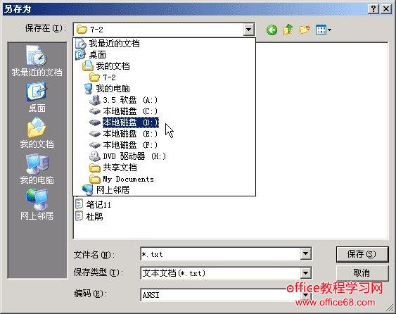 2)现在上面的“保存在(I)”旁边的白条里点一下,在出来的下拉列表中,选择“本地磁盘(D:),这儿有我们上次新建的自己的文件夹。