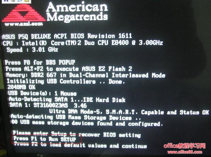 从上图,首先,根据前面例子提示,我们看出“press F1 to RUN SETUP”是进入BIOS的提示。