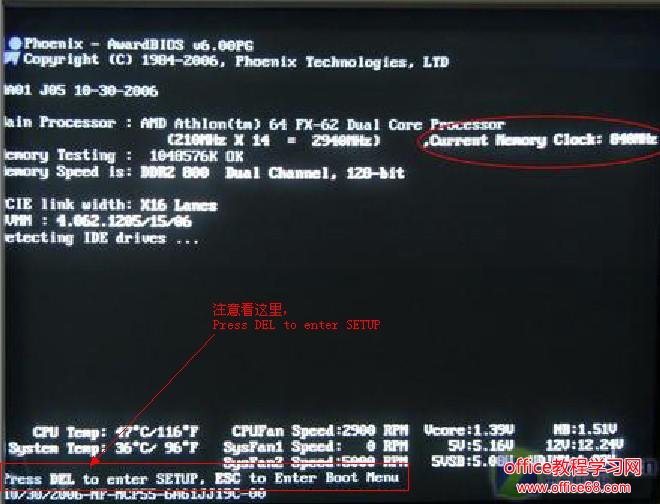 从上图可以看到,显示了提示信息“Press DEL to enter SETUP”,