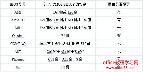 有的在屏幕上给出提示,有的不给出提示,几种常见的BIOS设置程序的进入方式我简单列表如下: