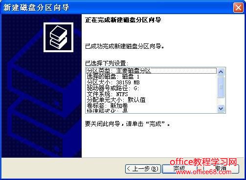 第八步:最后按“完成”按钮完成分区操作,剩下的容量可以按照以上操作重新创建新分区(见图10所示)。