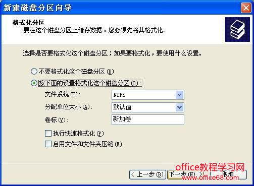 第七步:在图8所示界面中根据需要选择适合的磁盘分区文件系统及是否快速格式化等操作。windows98SE、windowsME、window2000家庭版、windowsXP家庭版等请选择FAT32格式文件系统;windowsXP(专业版)、windows2000(专业版)window2003等建议选择NTFS格式文件系统(使用FAT32格式也可以)。FAT32系统对文件大小有限制,单个文件最大不能超过2G,NTFS则无此限制。
