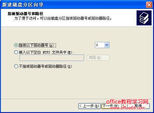 第六步:在图7所示的界面中指派驱动器号。驱动器号即给新建分区命名,通常说的C盘、D盘等就是驱动器号这里默认即可。单击“下一步(N)”。