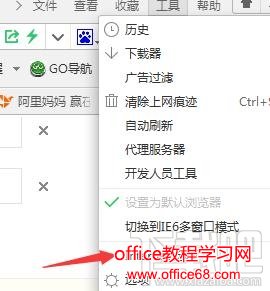 打开IE浏览器,选择“工具”菜单-->“Internet选项”。