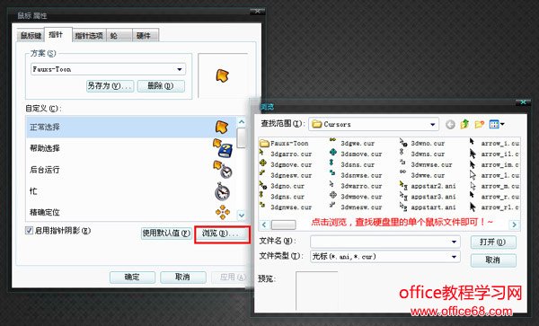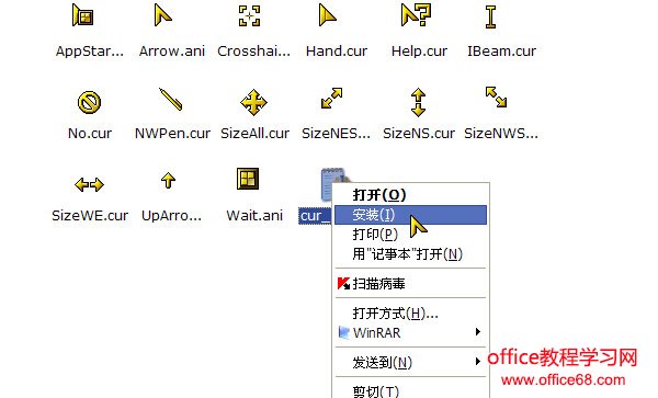 我们有时候下载的鼠标压缩包里没有 .inf 的安装文件,只是单个的.cur 或者.ani的鼠标文件怎么替换呢。