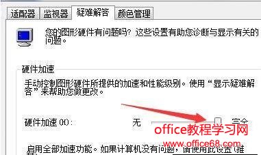 一、如何开启硬件加速 1、右击桌面→“屏幕分辨率”; ![]() 2、再点击高级设置,如下图所示; ![]() 3、然后会出现这样的页面,点击“疑难解答”选项卡。 ![]() 4、打开硬件加速,就搞定了哦。 ![]() 注意支持硬件加速有以下几个要求: 1. 必须硬件上支持硬件加速; 2. 驱动程序必须升级到最新版本。 二、硬件加速到底有没有用? 其实就是用硬件运算代替软件运算,提升是有,但幅度可以忽略,而且现在的主流配置基本上已经忽略硬件加速这个功能了,基本上没什么用,但是早期低端配置的电脑倒是也可以试一试。 |